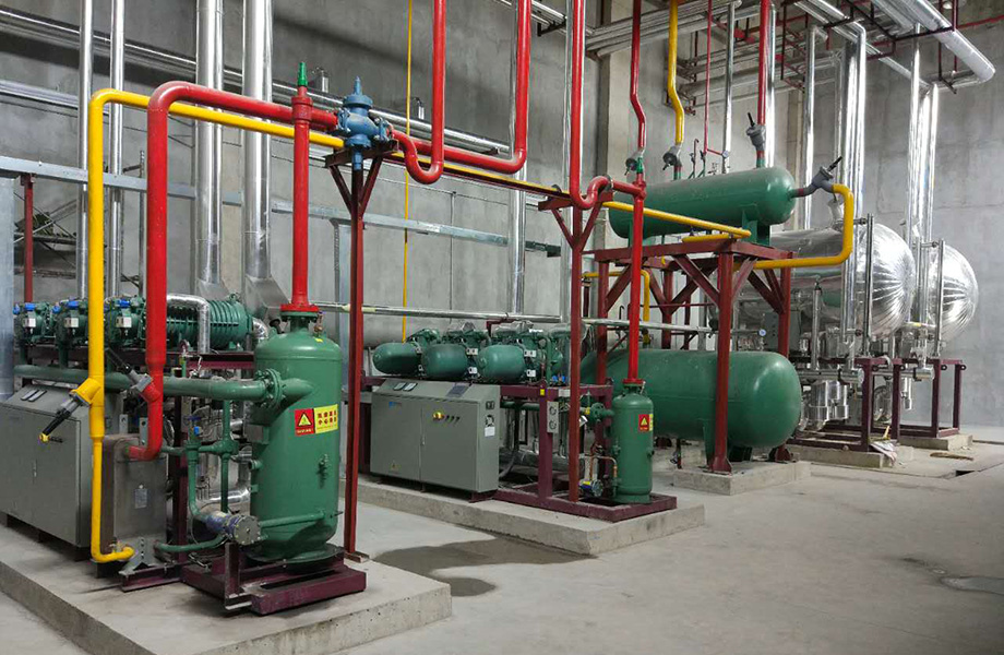 技術(shù)實(shí)現形式:低溫冷藏庫制冷系統采用1套比澤爾低溫螺桿三并聯(lián)制冷機組(3*HSN7471-75),1套3.5m3桶泵機組,2臺海密梯克冷媒泵,自動(dòng)熱氣化霜;¢26.4*2.0兩翅鋁排管,派克CK2系列氣動(dòng)截止閥,3間高溫保鮮庫制冷系統采用1套比澤爾高溫螺桿四并聯(lián)制冷機組(4*CSH6563-60),1套3.5m3桶泵機組,2臺海密梯克冷媒泵,水沖霜;吊頂式冷風(fēng)機,纖維布風(fēng)管送風(fēng)系統;高低溫系統共用1臺3m3高壓儲液器。