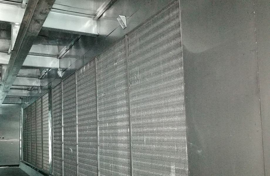 技術(shù)實(shí)現形式:制冷系統采用3臺復盛SDL系列單機雙級螺桿制冷機組,冷凝器采用寶豐蒸發(fā)式冷凝器,膨脹閥供液,油路采用虹吸油冷冷卻方式,通風(fēng)導流板設置。蒸發(fā)器采用?25*2mm鋁管套多孔鋁片,12mm-16 mm變片距, 采用水沖霜。